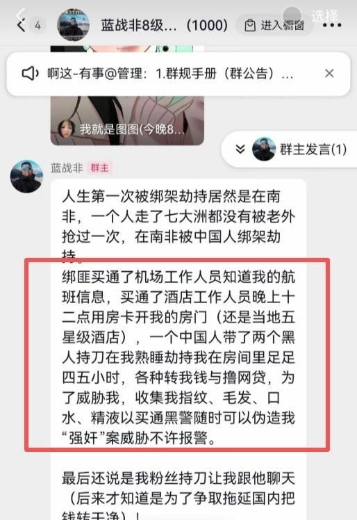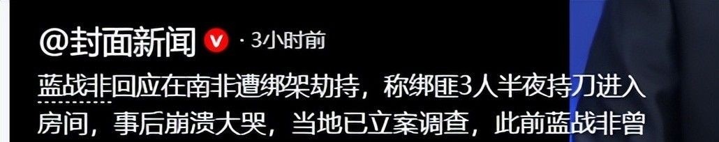 2. 12日晚间,坐拥千万粉丝的网络红人蓝战非发布了一篇情感真挚的长文,讲述了自己在南非经历的一场真实绑架事件。令人震惊的是,策划这场惊险劫持的幕后主使,竟然也是一名中国人。